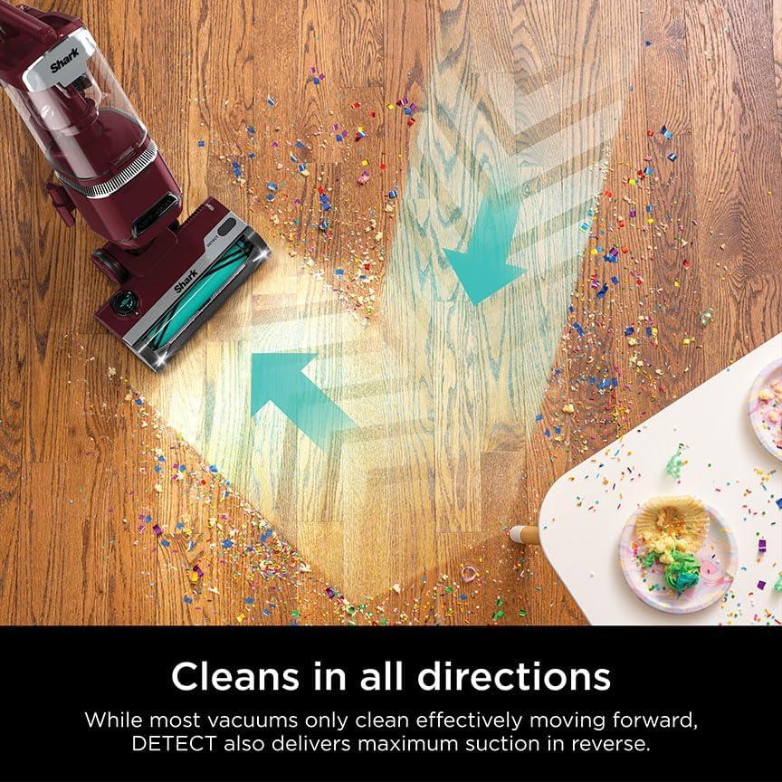 Experience the ultimate in intelligent cleaning power with Shark’s most advanced vacuum technology, engineered to deliver ultra-powerful suction and next-level performance across every surface of your home. Featuring DUOCLEAN DETECT, this dynamic two-brushroll system automatically senses hidden dirt, debris, and hair, then activates Detect Pro to boost suction and brushroll speed precisely where it's needed. DIRECTION DETECT ensures peak performance by sensing your movement—forward or reverse—and sending targeted suction in real time for consistent, powerful cleaning in every direction. DIRT DETECT takes on the messes you can’t see, identifying deeply embedded dirt and hair in carpets and automatically amping up suction to remove it effortlessly. With EDGE DETECT, suction intensifies within 2 inches of walls and corners, capturing debris other vacuums miss—even under baseboards. FLOOR DETECT completes the system, sensing floor types and intelligently adjusting suction and brushroll speed for optimal performance on carpets, hardwood, and everything in between. Designed for a fresher, healthier home, this vacuum also features Odor Neutralizer Technology to fight bad smells from the inside out, while the Anti-Allergen Complete Seal with HEPA filtration traps 99.99% of dust and allergens inside the vacuum—so they never make it back into your air (based on ASTM F1977, particles 0.3 microns or larger). With a 5-year limited warranty and versatile accessories for tough messes, this Shark vacuum redefines deep cleaning with unmatched intelligence, power, and confidence.