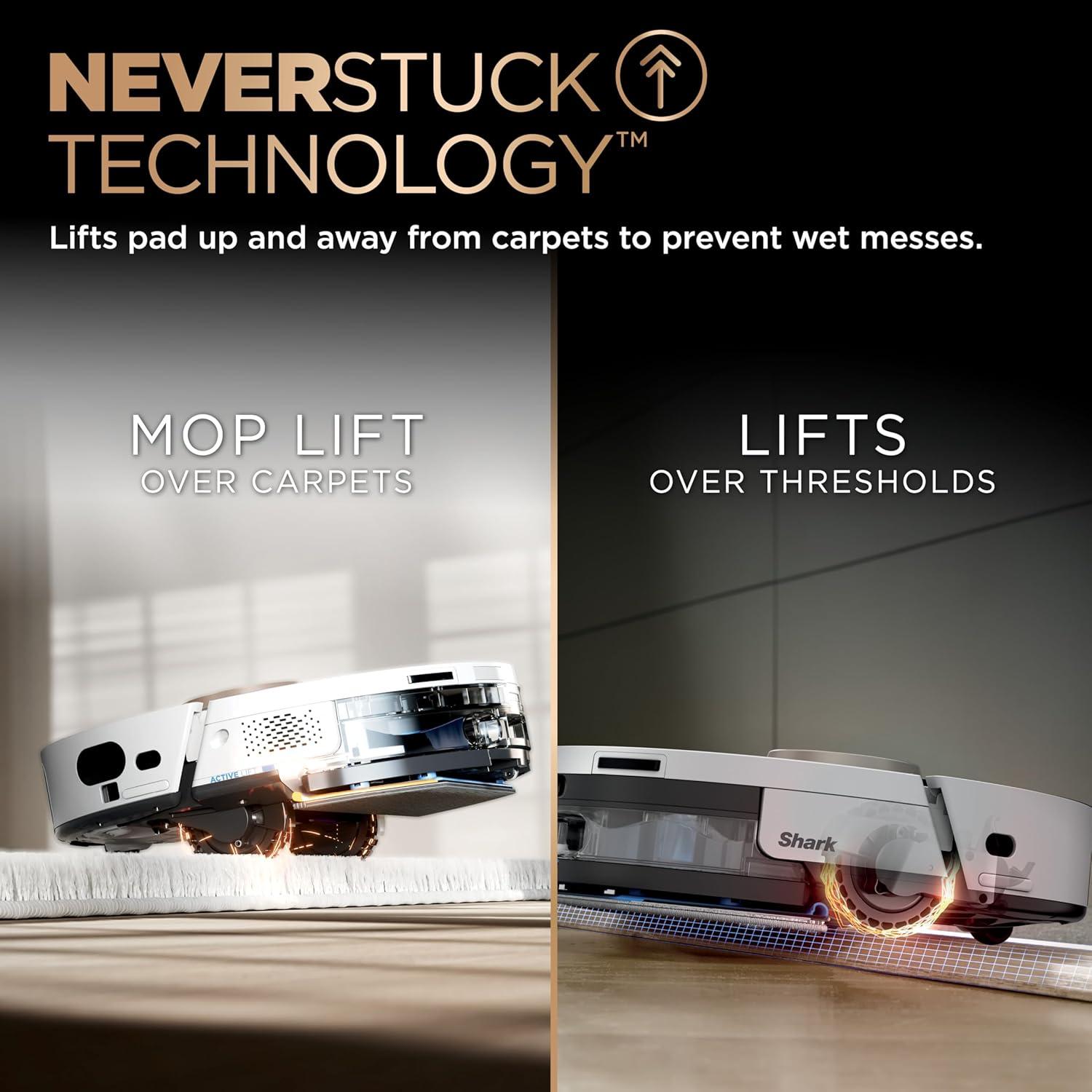 UP TO 2X BETTER CLEANING COVERAGE*: With NeverStuck Technology, the robot lifts itself over obstacles and across thresholds. When mopping, it keeps the pad above carpets to prevent wet messes and deliver whole-home coverage. (*vs. Shark ION).