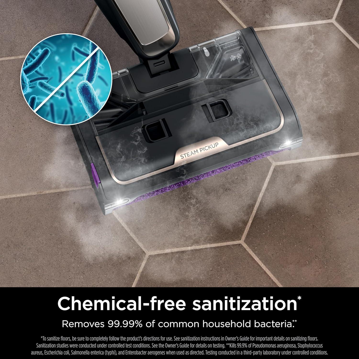 CHEMICAL-FREE SANITIZATION: Eliminates up to 99.9% of common household bacteria* with the sanitizing power of steam. No harsh chemicals – just add water.