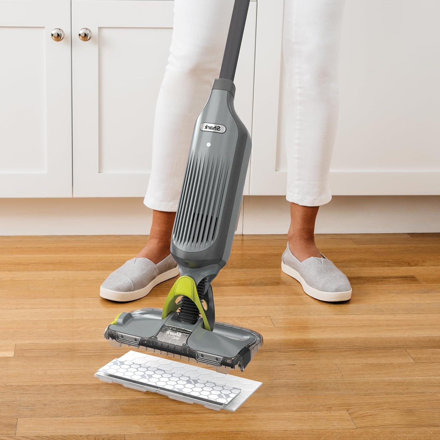 The ALL NEW Shark VACMOP Reveal is designed to deliver a complete clean on your sealed hard floors. Cordless cleaning system uses an innovative all-in-one disposable pad to vacuum and lock away debris, then spray mop tough messes. Reveal light illuminates hidden debris, so you never miss a spot while picking up debris with powerful suction, and tackling wet messes with the on-demand spray.